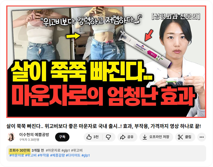 근거를 기반으로 의사가 직접 마운자로를 소개한 영상 중 조회수 1위 영상의 주인공이 직접 진료 합니다.