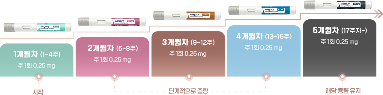 위고비는 총 5단계 용량이 있습니다.