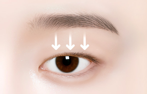 - 눈썹이 아래로 처져 눈두덩이를 누르면 눈뜨기 힘들고, 답답한 인상을 줍니다.