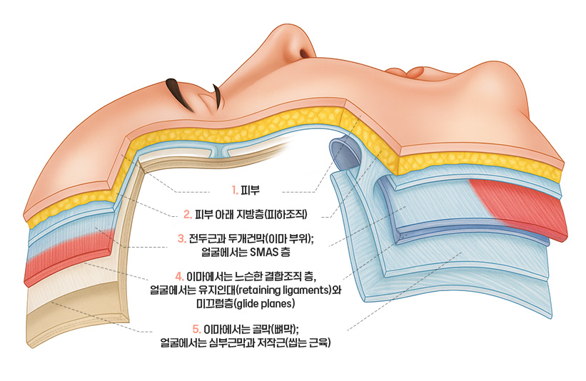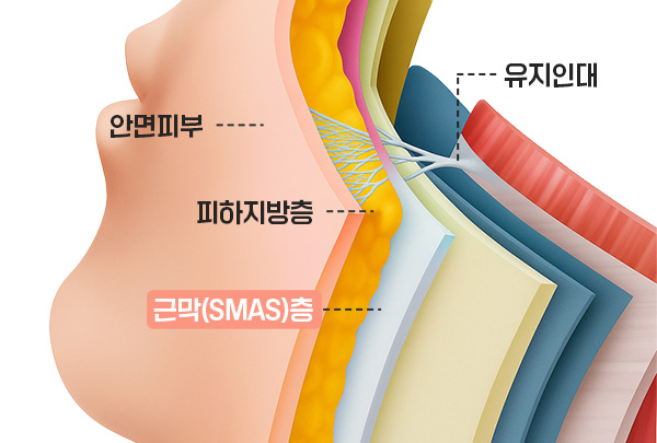 (피부 – 피하지방 – SMAS – Ligaments – deep fascia)
