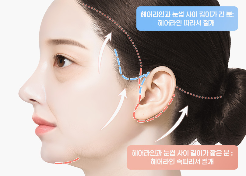 피부만 리프팅하게 되면 큰 효과를 볼 수 없어 리프팅시 함께 당겨주는 것이 좋습니다.