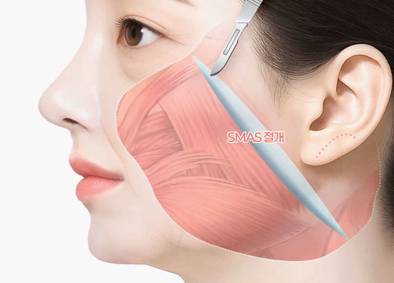 자연스럽게 매끄러운 라인을 완성하는 SMAS 리프팅입니다.
