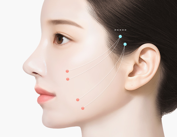 절개 위치가 두피 안쪽에 위치해 흉터 노출이나 탈모 걱정이 적고, 중안면부터 턱 라인까지 자연스럽게 당겨 처짐 개선과 리프팅 효과를 동시에 기대할 수 있는 시술법입니다.